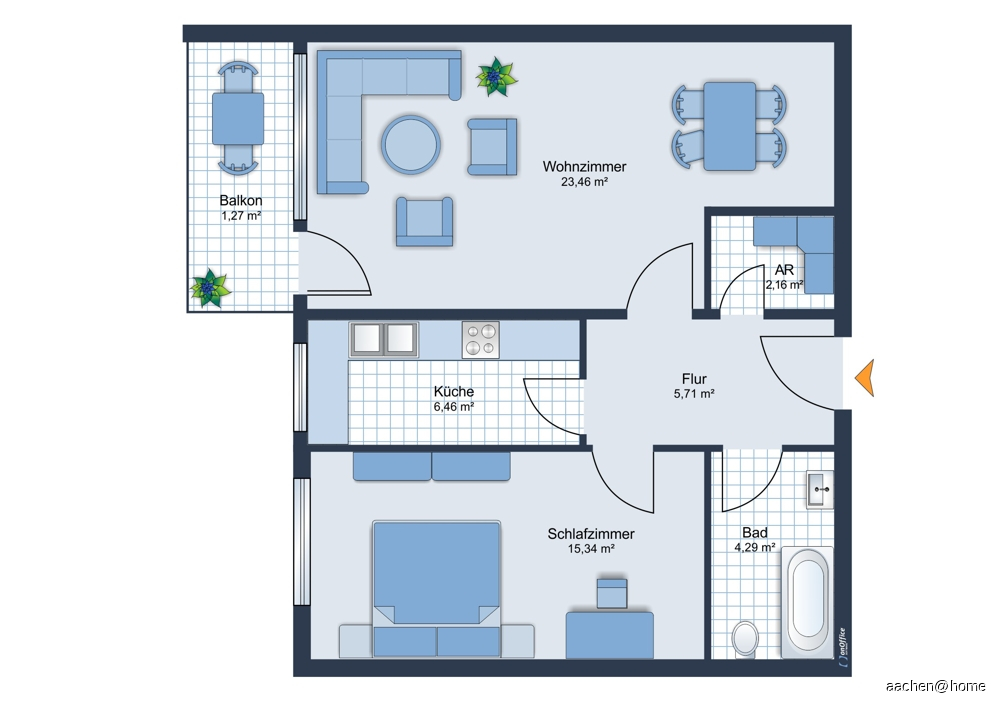 Gute Vermietbarkeit dank klarer Zielgruppe (Single/Paar)